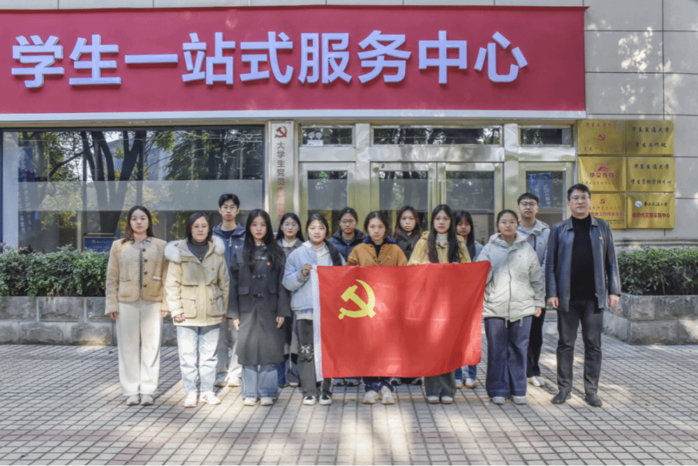 于学生“一站式”服务中心举行新党员入党宣誓活动,学院党委副书记光辉出席并作寄语讲话,各学生党支部书记参加活动。