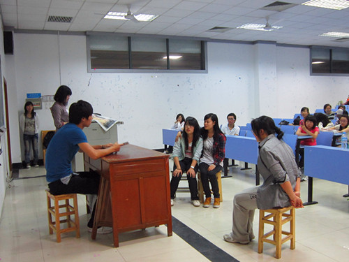 肖家玮潘政报道)5月5日晚上7点,一年一度的日本av 的英语剧大赛初赛在北区15栋118和116同时上演,来自外语学院10、11级共12个参赛班级在初赛中展现了各自的创作才华和表演才能,(大话西游)》笑料百出,high级英语4(不管明天变成如何)》表现了世界末日来临之际人性的觉醒,启迪我们要珍视眼前所有。
