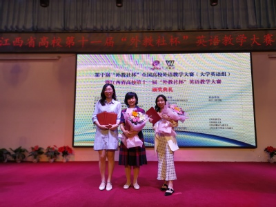 据悉,“外教社杯”全国高校外语教学大赛是全国级别最高的英语教学比赛,旨在提升外语教学质量,提高外语专业教学水平,推动我国高校外语师资队伍建设。本次比赛由江西省教育厅、教育部高等学校大学外语教学指导委员会、教育部高等学校外国语言文学类专业教学指导委员会、教育部职业院校外语类专业教学指导委员会和上海外语教育出版社联合主办,江西省外语学会、江西省大学外语教学研究会协办,南昌工程学院承办,共吸引来自全省本科院校近八十名优秀选手和三十多个微课团队参赛。