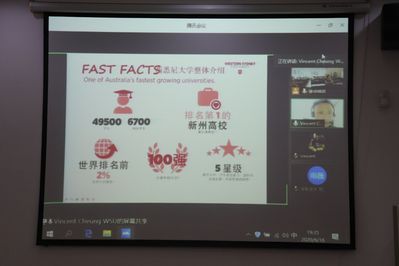 与西悉尼大学合作项目宣讲会在学院102会议室和腾讯会议同步举办,西悉尼大学国际处张老师以网络视频直播的形式向日本av