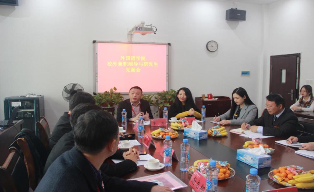 20周年院庆活动,与外院研究生在学院308会议室相聚一堂,为外语学院发展及研究生培养建言献策。会议由外语学院副院长袁平华教授主持,MTI中心主任陆秀英教授、副主任樊梦博士、研究生秘书钱淑群老师及2019级、2020级研究生参加。