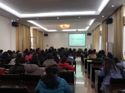 副院长袁平华教授和石进芳老师主持,相关专业教师代表、2019级MTI全体研究生以及部分对心理语言学感兴趣的2018级研究生和本科生共同参与聆听。