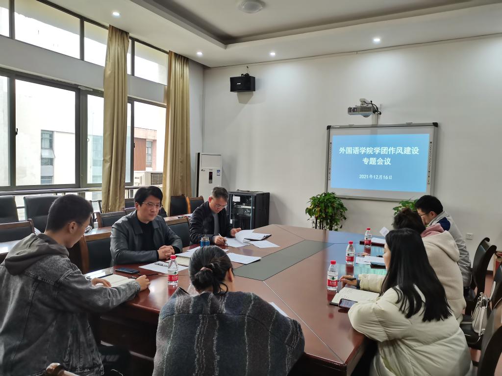 辅导员作风建设规定(试行)》等规定,12月16日9:00在教15栋308会议室召开了外语学院学团作风建设专题会议。院党委副书记刘朝武、院党委副书记光辉出席,全体辅导员参加此次会议,会议由光辉主持。