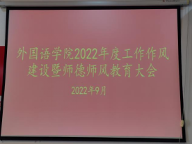 于教15栋102会议室召开了2022年度工作作风建设暨师德师风教育大会,会议由院党委副书记刘朝武主持,全体教职工参会。