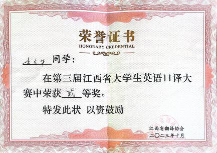 据悉,江西省大学生英语口译大赛由江西省翻译协会主办,旨在促进翻译学科建设和语言服务行业的繁荣与发展、培养高素质语言服务人才,满足我国日益扩大的对外交流需求,更好地服务江西省发展与国家发展大局。