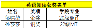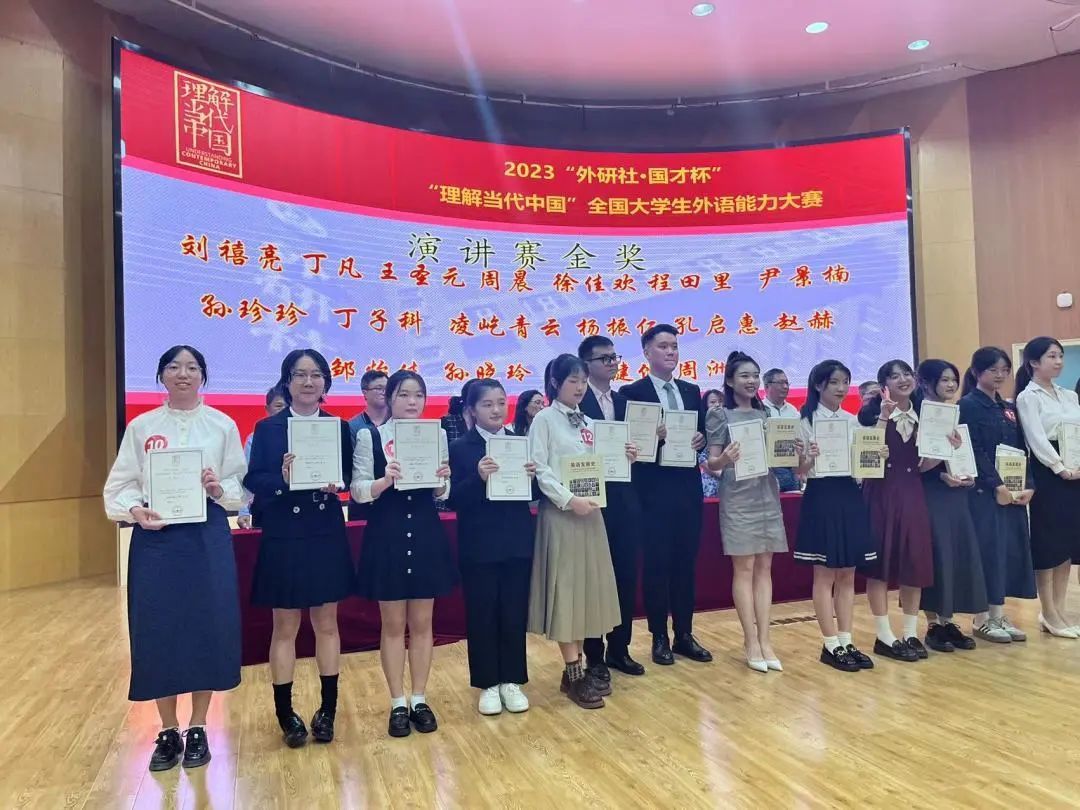 共有9名学子荣获佳绩。22级翻译专业邹怡佳在演讲比赛中荣获金奖并成功晋级全国决赛,20级翻译专业邹啸堃在阅读比赛荣获金奖并成功晋级全国决赛。