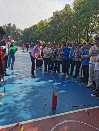 陆秀英和薛先庆到现场给接力赛跑老师们加油