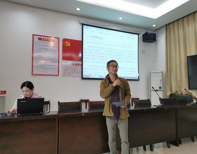 袁平华教授就教改课题定义、课题申报启示及课题案例进行了报告。他强调提高问题意识,并分享了近年的热点课题。此外,他还就课题选题、申报者个人学术积淀、创新思维及申报书文本精品设计和大家一起进行了讨论。最后,他就课题“基于CBI的大学英语线上线下金课教学模式研究与实践”进行分析,为各位老师的课题申报提供了良好的借鉴。