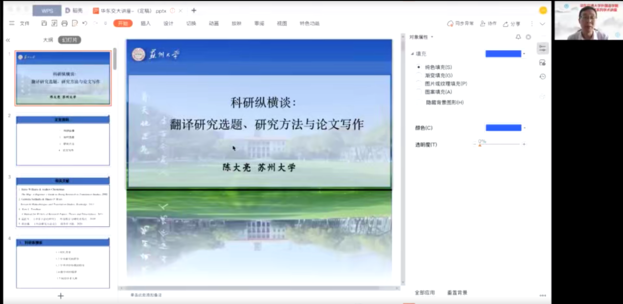 师生带来了一场题为《科研纵横谈:翻译研究的选题、方法与写作》的学术讲座。本次讲座线上进行,由日本av