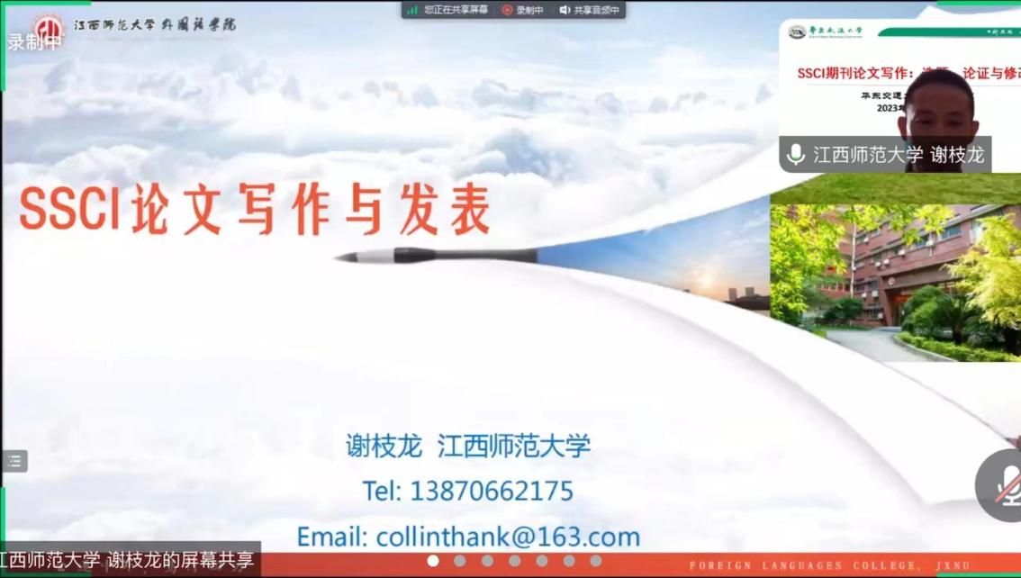 为加强学院学科建设,增强师生对国际期刊论文写作的了解,2023年 7月3日学院举办了主题为“SSCI期刊论文写作:选题、论证与修改”的系列学术讲座。讲座以线上形式进行,由江西师范大学谢枝龙教授、湖南师范大学肖越海教授和日本av
