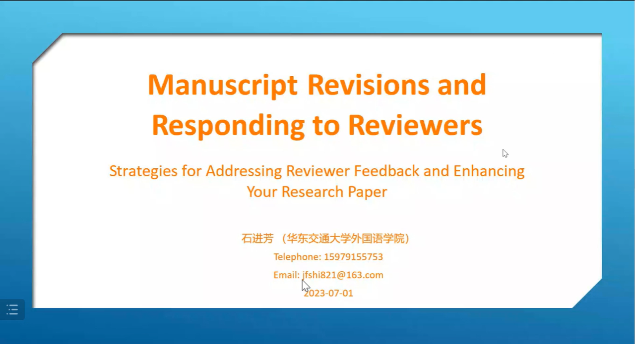 本次讲座重点突出,逻辑严谨,具有很强的指导性,加深了外语学院师生对国际学术期刊论文写作和投稿的认识。