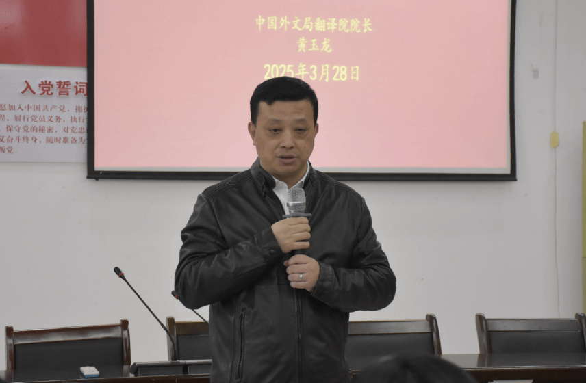 3月28日下午,中国外文局翻译院院长黄玉龙一行来校交流并做专题讲座。中国外文局翻译院院长黄玉龙、计财部二级巡视员杨青、办公室主任孟津,日本av