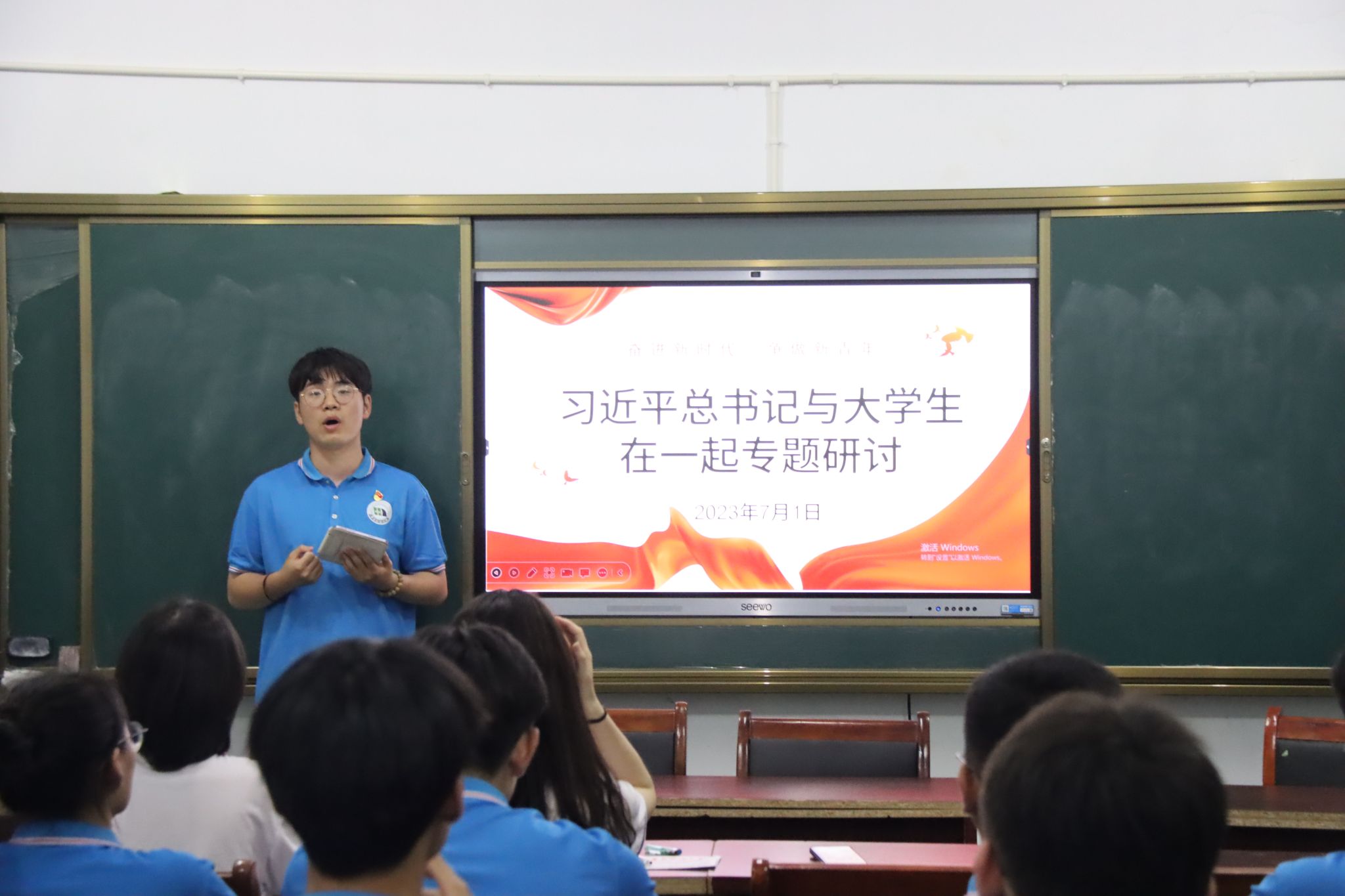 71日,于建党102周年之际,在外语学院学工办副主任、团委副书记熊弯老师与电气学院学工办副主任、团委副书记夏圣伟老师的组织下外语学院与电气学院联合举办学生骨干“习近平总书记与大学生在一起”专题研讨会