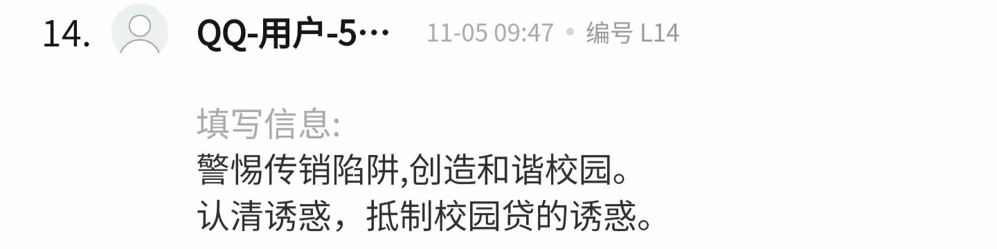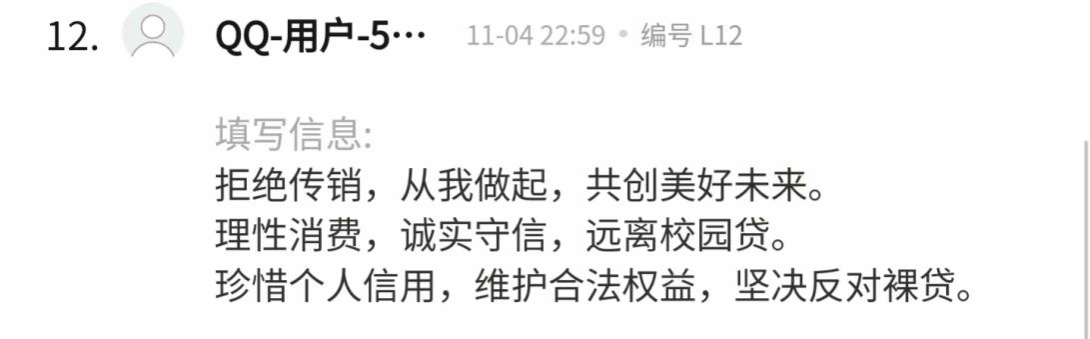 学生权益实践部以“反传销、校园贷、裸贷”为主题开展了班会活动,并以“反传销、校园贷、裸贷”为主题开展了标语征集活动,以更谨慎的心境面对传销。