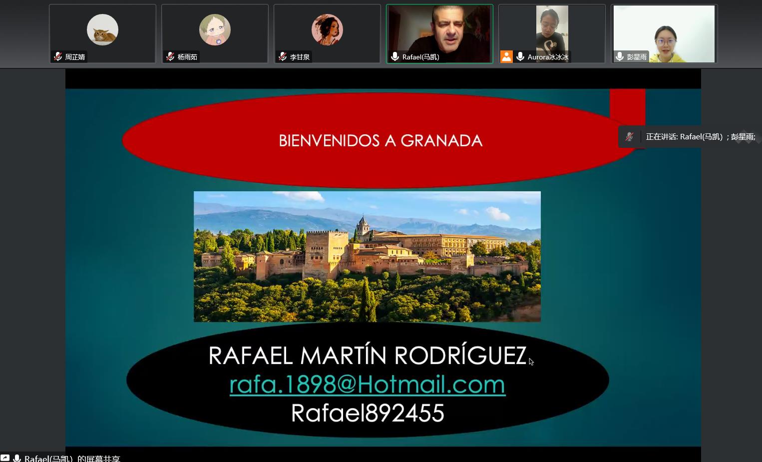 20221127日,西班牙格拉纳达大学代表教师Martín Rodríguez Rafael 博士进行了格拉纳达大学申硕项目宣讲,旨在为有意向的同学提供有关西班牙硕士的信息。