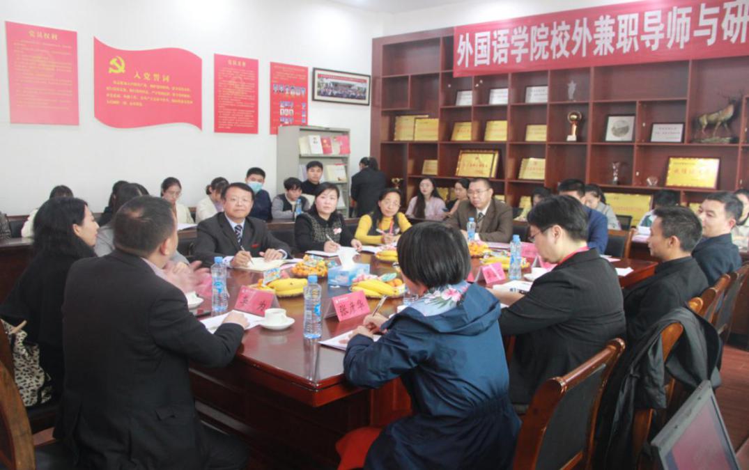 20周年院庆活动,与外院研究生在学院308会议室相聚一堂,为外语学院发展及研究生培养建言献策。会议由外语学院副院长袁平华教授主持,MTI中心主任陆秀英教授、副主任樊梦博士、研究生秘书钱淑群老师及2019级、2020级研究生参加。