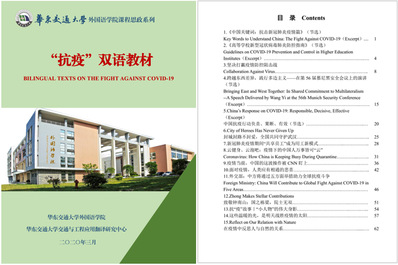 唐斌教授在《应用翻译》课堂里,将培养学生专业能力和疫情知识的学习普及结合起来,组织同学们搜集“抗疫”双语素材,并编辑为“抗疫”课程思政双语教材,让全校学生在学习疫情双语表达的同时,培养学生家国情怀和国际视野。该“抗疫”双语教材还作为日本av