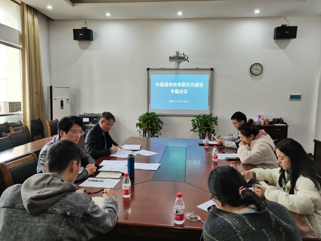 辅导员作风建设规定(试行)》等规定,12月16日9:00在教15栋308会议室召开了外语学院学团作风建设专题会议。院党委副书记刘朝武、院党委副书记光辉出席,全体辅导员参加此次会议,会议由光辉主持。