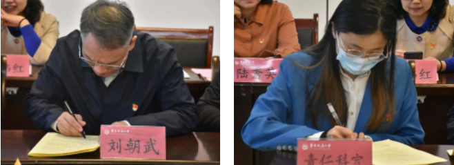 为深入贯彻与落实学校2023年平安建设、校园安全稳定工作会议精神,刘朝武、赵小晶与相关负责人签署平安建设目标管理责任书。赵小晶与系消防责任人签署消防安全责任书。