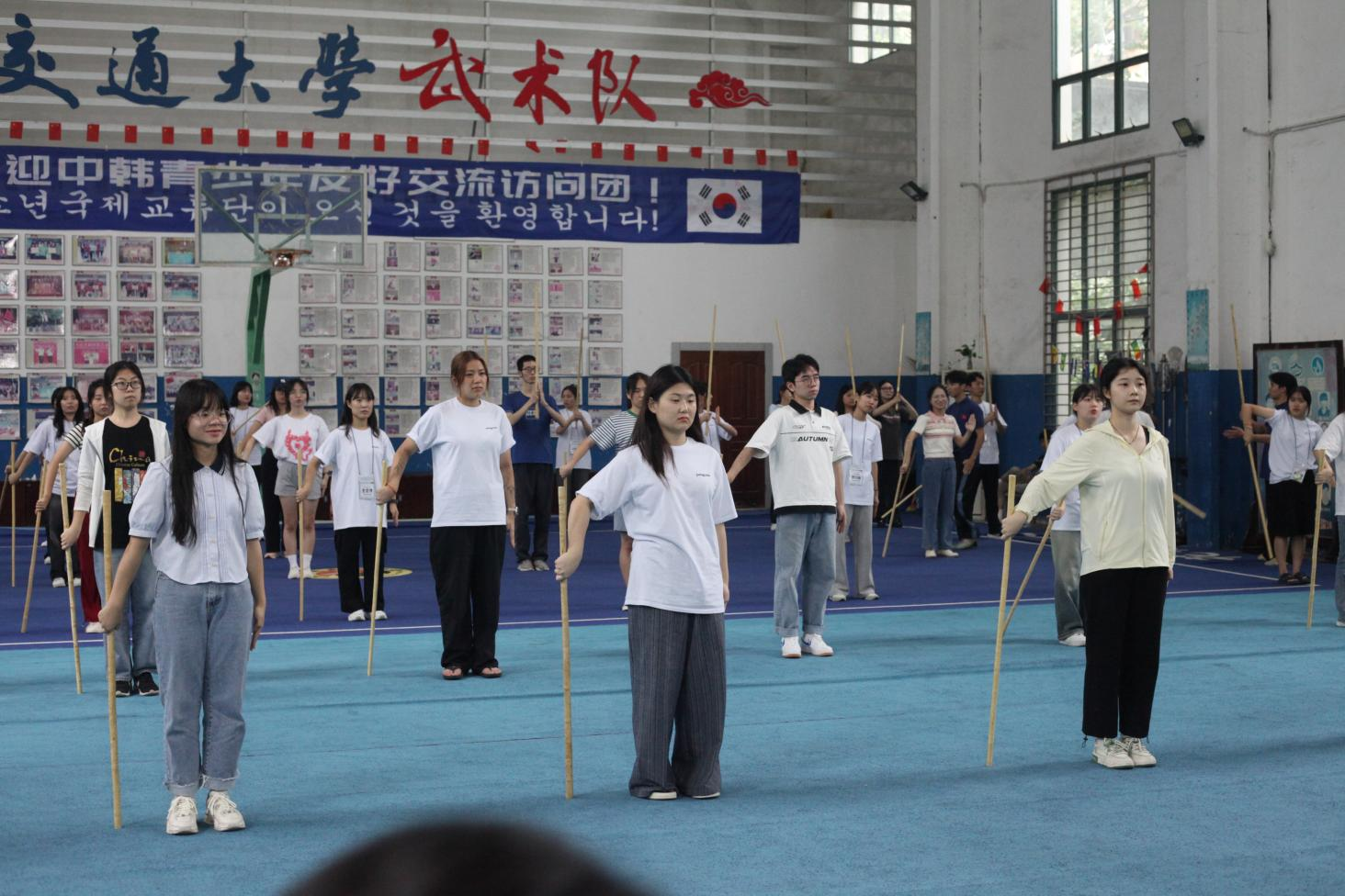 国家重点实验室,给予热情全面的VR技术等讲解,给韩国团学生带来别开生面的科技乐趣;26名志愿者教授结对伙伴中华传统棍术,展现中华武术独特魅力;他们结伴走进充满烟火气息的万寿宫夜市,在志愿者们的倾情讲解下,韩国团学生得以欣赏独特的豫章风情。