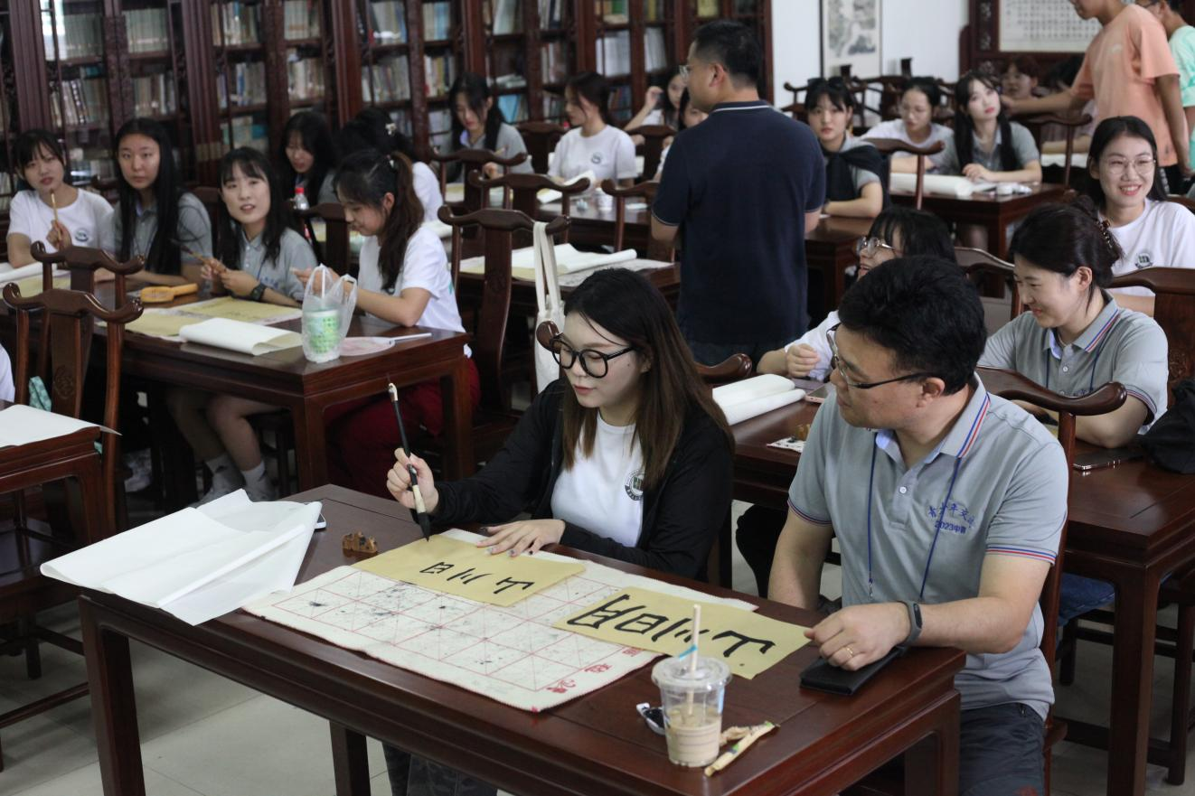 志愿者积极与韩国青年以书法促交流,带领他们领略阴阳变化之美;一对一带领韩国团学生参观 日本av