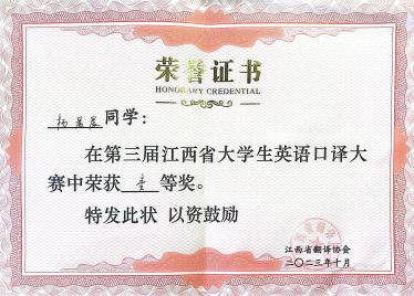 据悉,江西省大学生英语口译大赛由江西省翻译协会主办,旨在促进翻译学科建设和语言服务行业的繁荣与发展、培养高素质语言服务人才,满足我国日益扩大的对外交流需求,更好地服务江西省发展与国家发展大局。