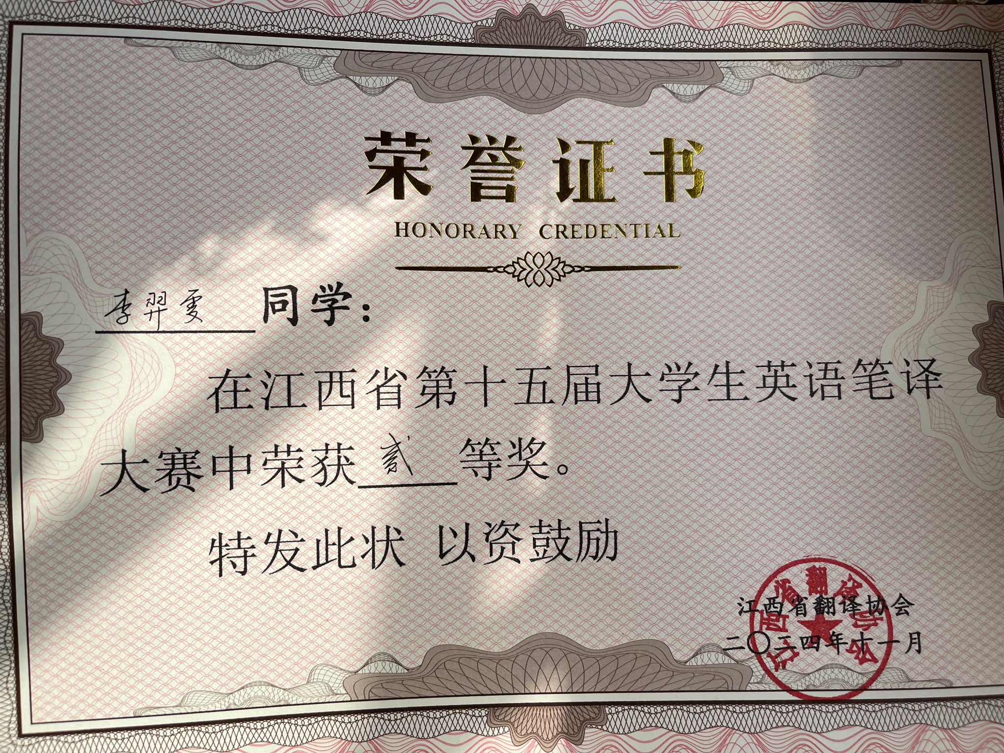学子23级MTI李羿雯荣获省级二等奖;英语(国际贸易)专业学生余子胜豪,MTI学生陈萍萍、胡熊彬、黎明优、彭圣君荣获省级三等奖。